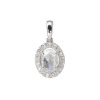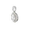 オーバルシェイプのローズカットダイヤモンドをセンターに配し、ラウンドブリリアントカットダイヤモンドで取り巻いたヘイローデザイン。