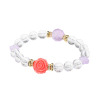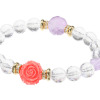 アメシストの大きなファセットビーズをメインに、ほとんど濁りのない美しいロッククリスタルクォーツのファセットビーズ、かわいらしいクローバー型のアメシスト、ピンクのバラを表現した模造石のカービングビーズを組み合わせました。