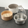 二段蒸しも楽しめる木製せいろと深ザルもセット。ヘルシーな蒸し料理から煮込みまで、料理の幅が広がる。