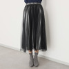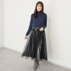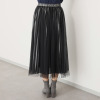 チュール素材とプリーツスカートの着丈にわずかな着丈差をつけることで躍動感が生まれ、上品でな雰囲気を演出します。