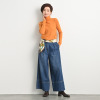 ハイネックは二枚仕立てで適度な肉感があり、張り付きすぎないフィット感と折り返しやすさが特徴です。