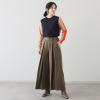 ウエストは、前はフラットに、後ろはゴムギャザーを配して、スマートな印象とはき心地の良さを両立させました。