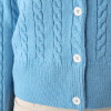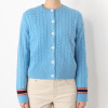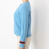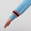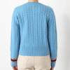 トラッドをベースにしたデザインに、ミニケーブルと表目が交互に並んだストライプ風の編地が特徴です。