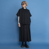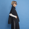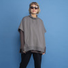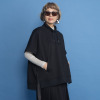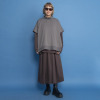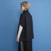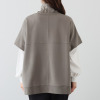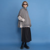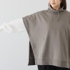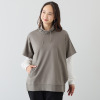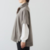 ポンチョのような四角いシルエットながら、ベストと同じ感覚でニットやワンピースの上にバサッと着られる便利な一枚。