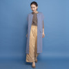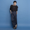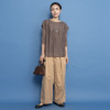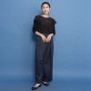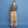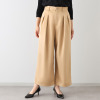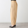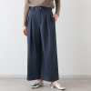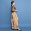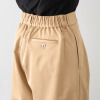 前身頃に配した左右のタックが、気になるお腹周りをやさしくカバー。縦に描くタックの陰影がすっきりとした印象を与え、マニッシュな雰囲気も醸し出します。裾に向かってやや分量を増やした旬なシルエットながら、行きすぎない絶妙なバランスで長く愛用できるデザインに。後ろはゴムギャザー仕様ながら、膨らみすぎない分量に設定。ゴム押さえステッチ入りでゴムが捻じれにくい工夫をほどこしました。ボタンは、貝ボタンを使用。