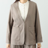 重厚感のあるスーツ地のような生地を採用したノーカラージャケットです。