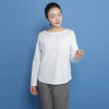 高品質のピマコットン、サンホーキンコットン、オーストラリアコットンを選りすぐって編み立てた、綿100%のスムースジャージー素材を使用。細やかな目面が美しく、大人の上質カジュアルに適した高級感を漂わせます。両面編みによる程良い厚みで透けにくく、型崩れがしにくいのもポイント。艶感を高めつつ毛羽立ちを抑えることで、なめらかな質感を実現しました。接触冷感性を持たせているため、暑い季節も活躍します。