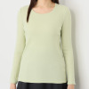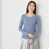 デコルテをきれいに魅せるラウンドネックが魅力的です。