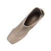 脚長見せ効果抜群のヒール仕様ながら、歩きやすさにもこだわりました。シンプルながら個性が効いた一足。
