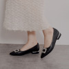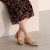 煌めくビジュウモティーフが、装いに高級感をプラス。フラットで履きやすく、さまざまな装いにマッチ。