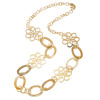 水牛素材のみで仕立てたロングネックレスです。繊細にカットされたフラワーモティーフとオーバルパーツを連ねた、可憐で上品なデザイン。縦ラインを美しく強調するロング丈で、抜け感のあるシルエットが魅力です。