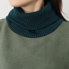 緩やかなオフタートルネックが首元を暖かく包み込み、マフラーいらずの快適さを提供。