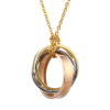 愛・友情・忠誠を象徴するとされる3色の地金を胸元にまとい、“高見え”ジュエリーの定番に。