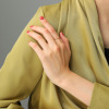細身のラインが指をすっきりと見せ、他のリングとの重ね着けもおすすめ。