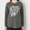 胸元にはレオパード柄をシルバー箔で大胆にプリントし、その上にメッセージロゴを刺しゅうしました。