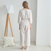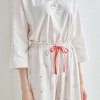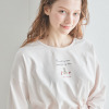 肌触りのやさしいコットン100%素材を使用。トップスは、春先から秋口まで活躍する、七分袖に設定。胸元には、パンツとお揃いのかわいらしいくまのぬいぐるみといちごをプリントで表現。肩を落としたオーバーサイズで、こなれ感のあるシルエットに仕上げました。襟ぐりは、裏バイヤス始末で仕立てた型崩れしにくいつくりです。