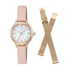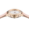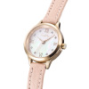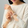 淡いヌードカラーのレザーベルトを使えば、ケースのピンクゴールドカラーの組み合わせで甘辛ミックススタイルに。