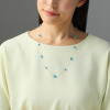 カジュアルな雰囲気を、柔らかな発色のターコイズで上品に。装いに軽やかになじむ、余白のあるデザイン。