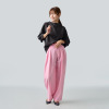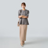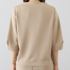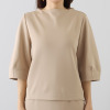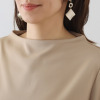 トップスは肩から首に沿って立ち上がるネックラインの設計により、首元をすっきりと見せるとともに、肩や背中周りのラインをシャープに整えます。トレンドのバルーンスリーブを取り入れながらも、全体がすっきりと見えるシルエットにすることで甘くなりすぎず、程良い華やかさをプラス。パターンとカッティングにこだわった、体形による差が出にくい立体的な設計で、幅広い方にバランス良くフィットします。