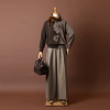 無染色のモカグレーとダークブラウンの2色を効果的に用い、前身頃はインターシャ編みでアネモネの花をイメージした柄を大胆にあしらいました。