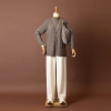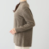 後ろ身頃はリブ編みにし、程良い厚みの編地に仕上げており、コートインにも窮屈さを感じにくく、コーディネイトの幅が広がりそう。