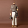 首元は、幅広いアウターと合わせやすい、バランスの良いややコンパクトなラウンドネック。