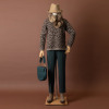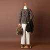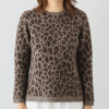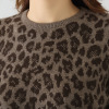二重組織の編地が生み出す暖かさと柔らかさ。レオパード柄をジャガード編で編み上げた総柄デザイン。