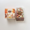 パッケージには森の実りをイメージし、赤く色づく木々の下で、木の実やきのこなどの森の実りを収穫する、かわいらしいリスたちが描かれています。