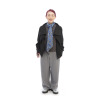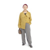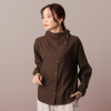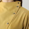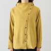 ボトルネック風に立ち上がった襟と前端にはカーブを付け、アシンメトリーに並んだ黒貝調ボタンがリズミカルな印象を与えます。