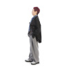 ボタンの開け方で表情が変わり、少し外すとシャープな抜け感が生まれ、すべて外すと襟元にドレープが現れて動くたびに軽やかな揺れ感を演出。