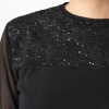 伸縮性のあるパワーネットにレースの花が咲く。胸元のスパンコールが上品に輝く、着回し力抜群の一着。