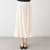 ギャザーデザインにより、身体のラインを拾いにくい! ふんわりエアリーなシルエットが魅力のスカート。