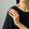 中心のひときわ大きな合成モアサナイトの石座を一段高くし、周囲を17石の合成モアサナイトで取り巻くことで、一層のラグジュアリー感をプラスしました。