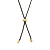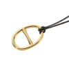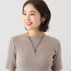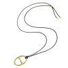 トップに楕円形モティーフをあしらった、コードペンダントです。オーバルデザインの中心にはシンプルなラインをあしらい、上品な印象に仕上げました。トレンドのブラックカラーのコードには、シリコーン付きのスライダーを備えており、長さの調節が可能。目立ち過ぎないデザインながらも存在感があり、毎日のコーディネイトに取り入れやすい点が魅力。オーバルパーツは取り外しができるので、横向きにしてコードを付け替えたり、お手持ちのチェーンに変えても素敵です。