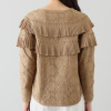 モダンな幾何学柄のレースに、プリーツ加工をほどこしたフリルを2段あしらったデザイン。