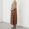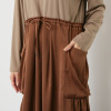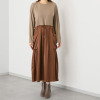 スカート部分には光沢を抑えたヴィンテージサテン素材を採用し、しなやかなドレープ性が動くたびに上品な揺れ感を演出。