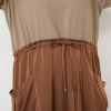 スムースジャージー素材とヴィンテージサテン素材を組み合わせた、ロング丈のエレガントなワンピースです。