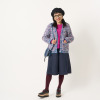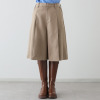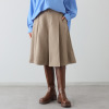 膝が隠れる丈感で、ローファーやブーツなど幅広いシューズとバランス良く合わせられます。