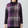 オフタートルの襟元が首周りをすっきり見せ、顔周りに上品な雰囲気をプラスします。