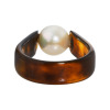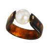 アコヤパールの中でも柔らかな色合いの玉を使用し、べっ甲リングで挟んだ存在感あふれるデザイン。