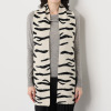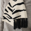 ジャガード編みの高級感とフリンジの遊び心。寒い日のコーディネイトをゼブラ柄でぱっと華やかに。