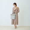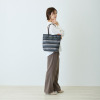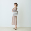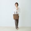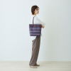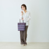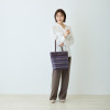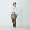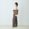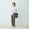 ハンドルは根元から倒れるため、バッグを置いた際に邪魔になりにくいつくり。裏地と合わせたバイカラー仕様のため、さりげないおしゃれを演出します。