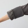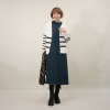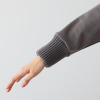 襟元と袖口は、バルキーな糸で編み立てたリブニットで切り替え、奥行きを添えました。
