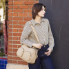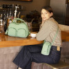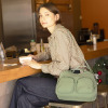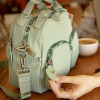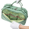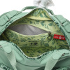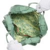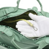 外側には当ブランドオリジナルで作製した高密度軽量ポリエステル素材を使用。素材特性として耐久性があり、ほのかな凹凸感と美しい発色が上質な雰囲気を醸し出します。また、はっ水加工をほどこしているため安心感があるのも魅力です。ボタニカルモティーフの裏地とファスナー、木の葉をイメージした牛革の引き手が特別感を演出。