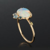 オパールのサイドに添えた愛らしいメレサイズの石は、3本の小さな爪に動きをつけることで花のつぼみや花の揺らぎを表現。