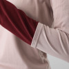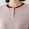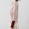 襟ぐりと袖口の配色がさりげないポイントとなり、カジュアルなコーディネイトに洗練された雰囲気をプラス。