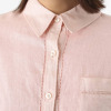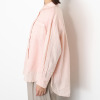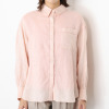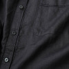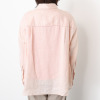 前立ての横や胸ポケットの端、背中のヨーク下にほどこされた繊細なピコ刺しゅうが印象的で、小さな穴が連なり光を通す独特の表情を作り出します。シンプルなデザインに上品な遊び心をプラスした、大人の女性にふさわしい一着に。ゆったりとした身幅でリラックス感があり、お尻が隠れるやや長めの着丈に設定。脇両サイドにボタンが付いており、前身頃を軽く重ねればカシュクールのような着方も。