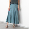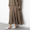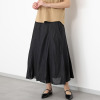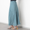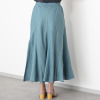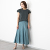 European Flax(R)という国際基準を満たした、西ヨーロッパ産の高品質のフレンチリネンを100%使用。細番手(60番)糸を使用することで、きめ細やかな表面感と美しい光沢を実現しました。腰周りをすっきりと見せながら、裾に向かって自然に広がる美しいシルエットが特徴。裾に向かって流れるように入れたイレギュラーなマチ切り替えにより、動きに合わせて優雅に揺れ動きます。