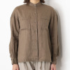European Flax(R)という国際基準を満たした、西ヨーロッパ産の高品質のフレンチリネンを100%使用。細番手(60番)糸を使用することで、きめ細やかな表面感と美しい光沢を実現しました。ミニマルなバンドカラーが首元をすっきりと演出。ボリュームスリーブが女性らしい印象を与えます。裾には同生地のひもを通したドローストリング仕様で、絞ることでシルエットのアレンジも。