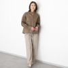 繊維一本一本が空気を含む麻の素材特性によりムレにくく、寒暖差の激しい季節も快適に過ごせそう。洗うほどに柔らかさが増し、着るたびに身体になじんでいく天然素材の魅力を存分に感じられます。